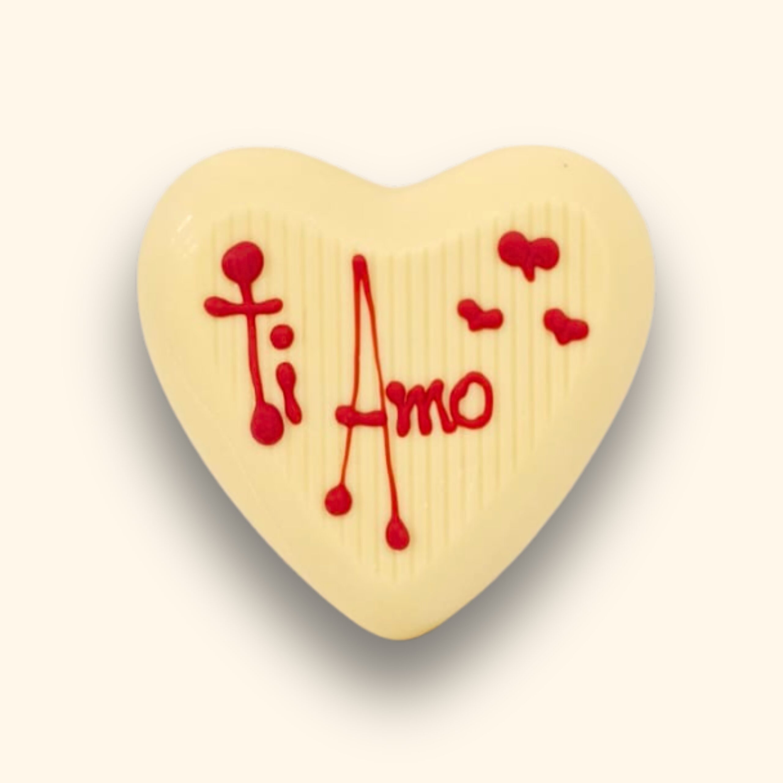 Un piccolo gesto che dice tutto: cuore in cioccolato bianco artigianale, realizzato e decorato a mano con la scritta “Ti Amo”. Perfetto come pensiero romantico, segnaposto dolce o regalo d’ultimo minuto, fa parte della collezione in edizione limitata San Valentino 2026.