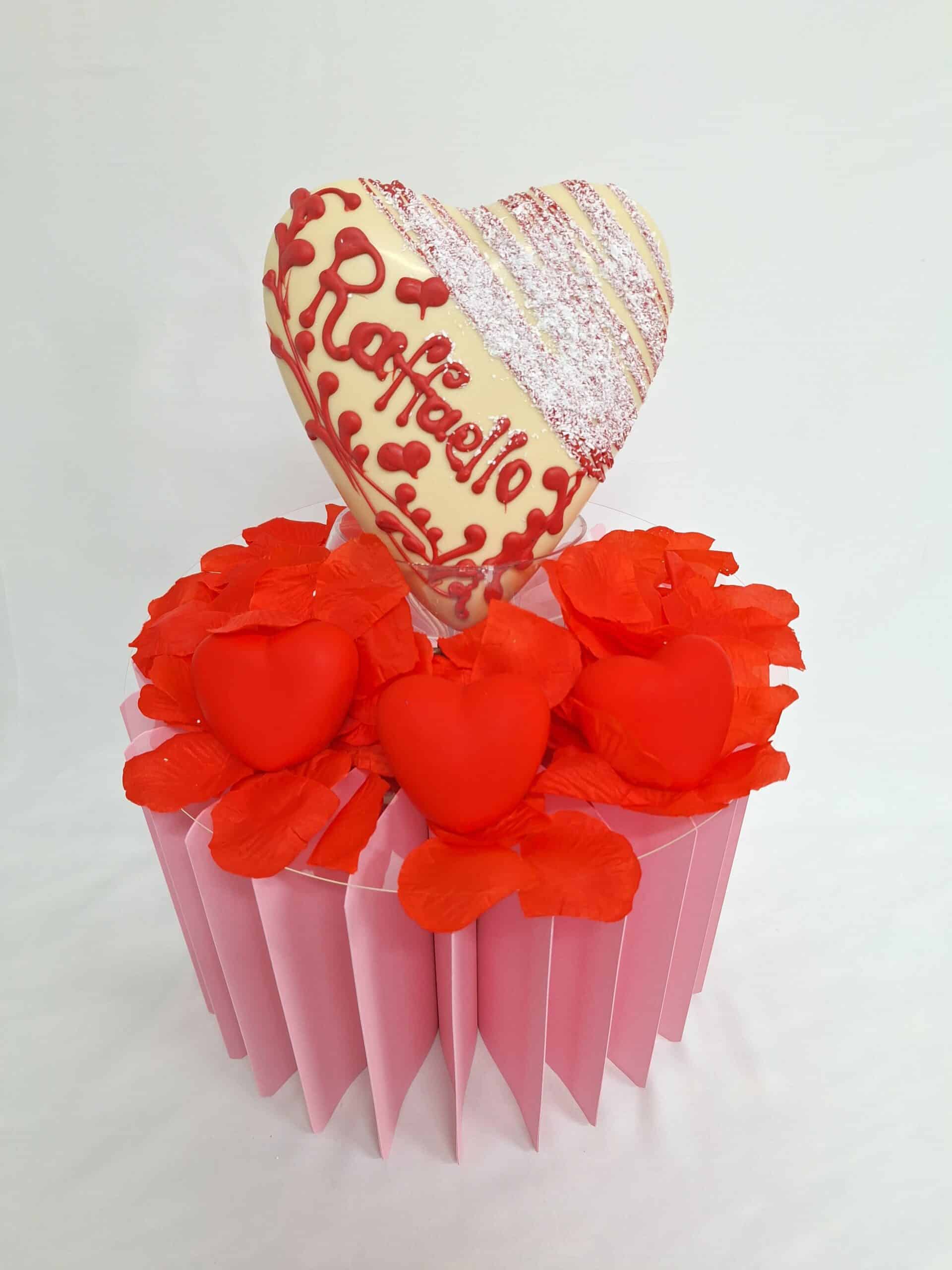 Festeggia San Valentino con un cuore di cioccolato ripieno di crema Raffaello, un mix di cocco e mandorla che conquisterà ogni palato.