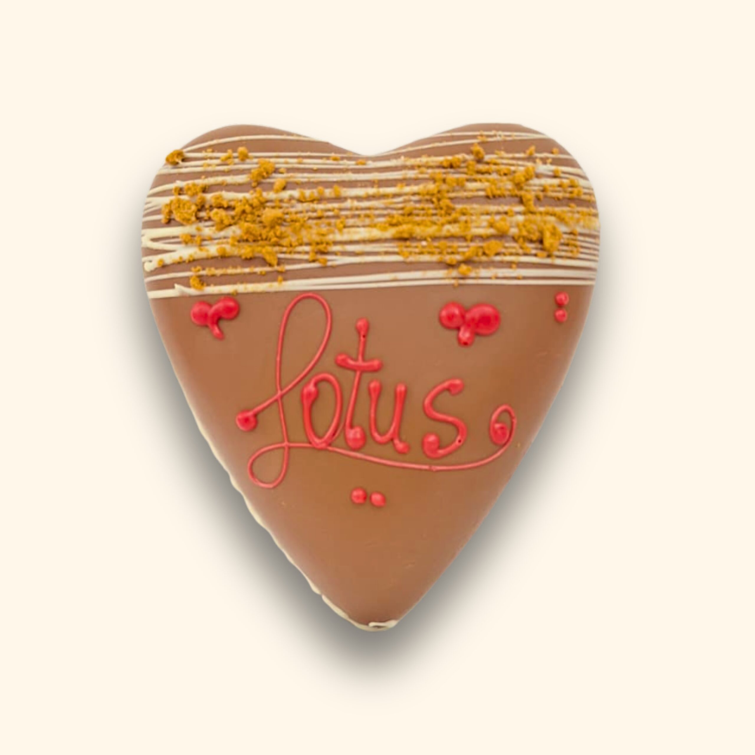 Cuore in cioccolato al latte artigianale, decorato a mano, con crema Lotus dal gusto caramellato e speziato, irresistibile. Un regalo perfetto per San Valentino: dolce, intenso e super goloso. Realizzato in edizione limitata 2026.