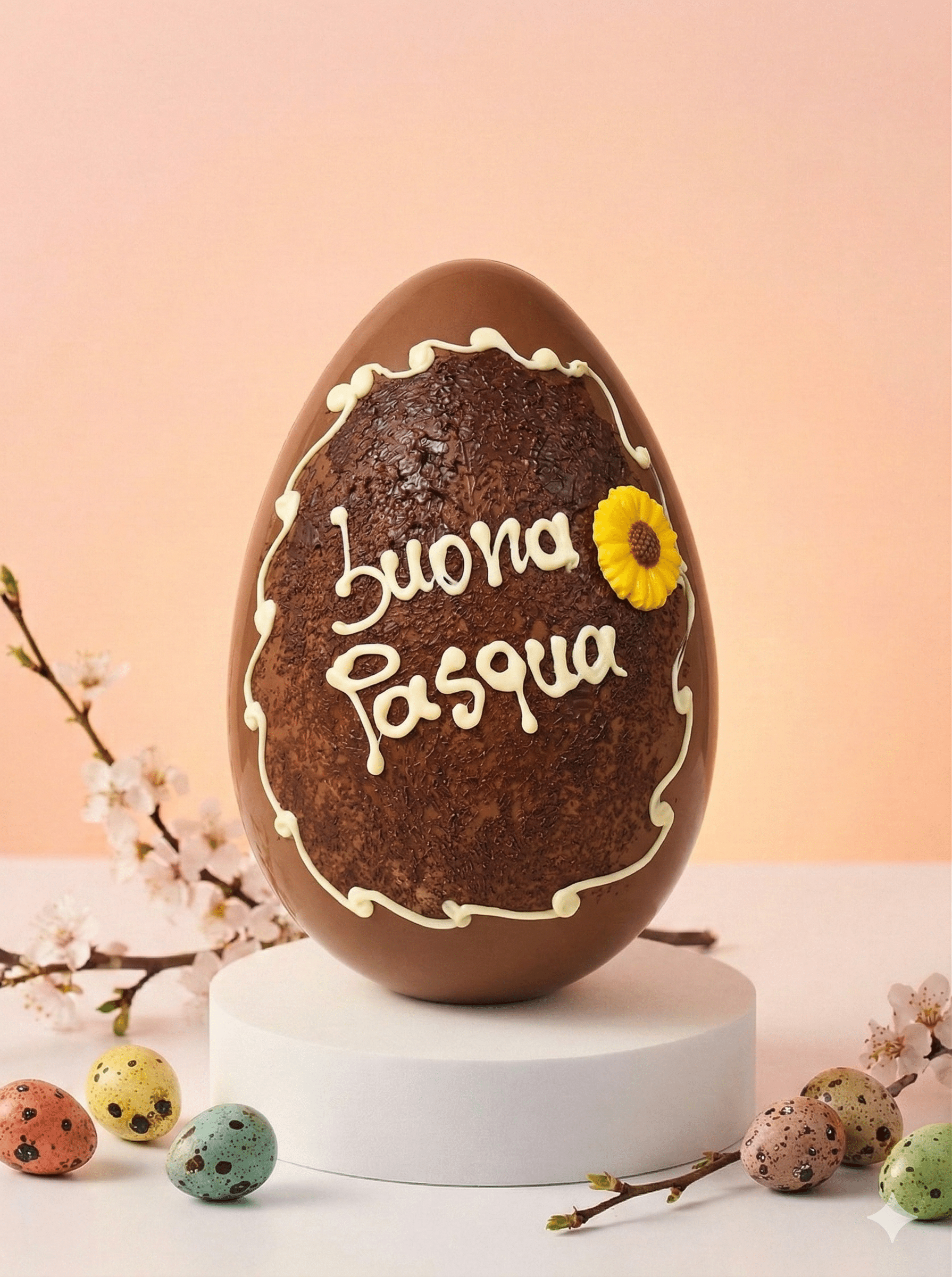 • Il Messaggio del Cuore: Su questa superficie, la frase “Buona Pasqua” è scritta interamente a mano, trasmettendo il nostro augurio più sincero.